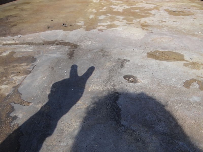 今日は防水工事を進めておりました。まずは既設防水シートの撤去。