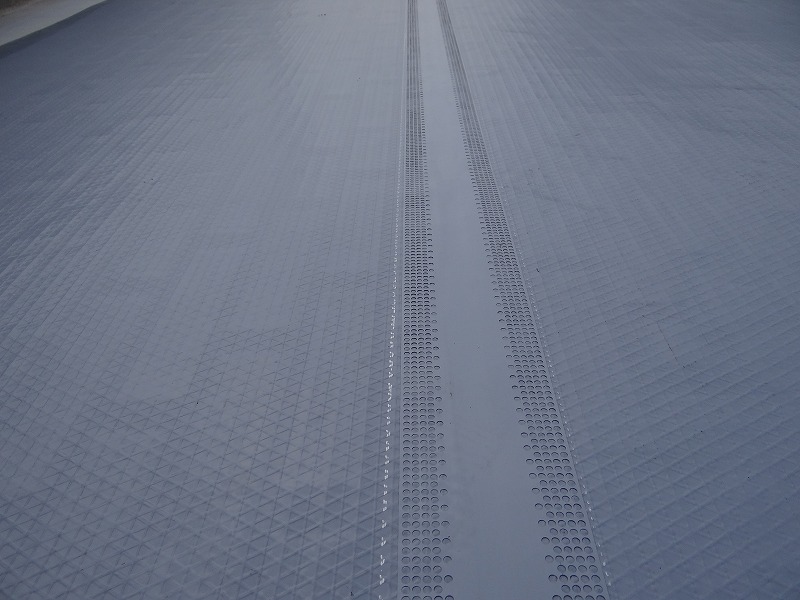 昨日の続きで防水工事を進めておりました。プライマー塗布後は通気緩衝シートを貼って、