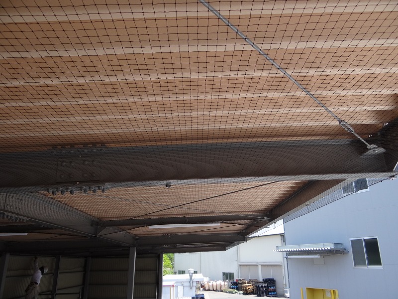 昨日に続き鳥害対策工事は、金物の取り付け完了後、防鳥ネットを張り出しました。