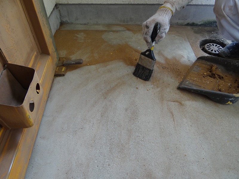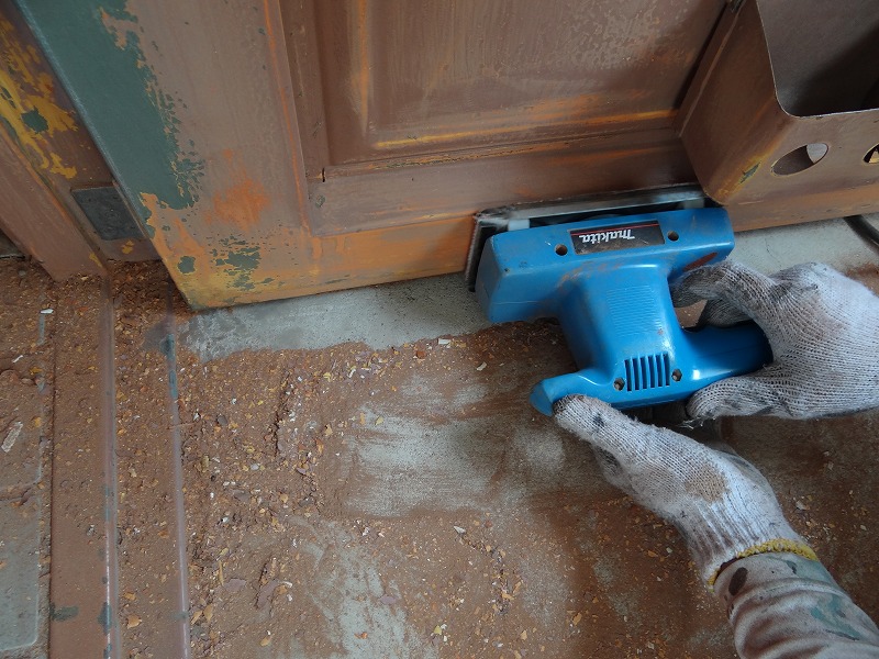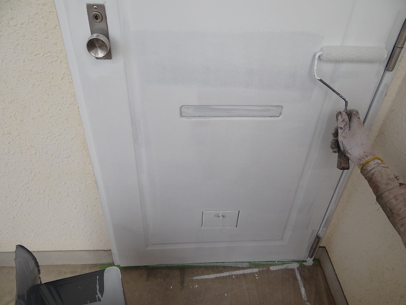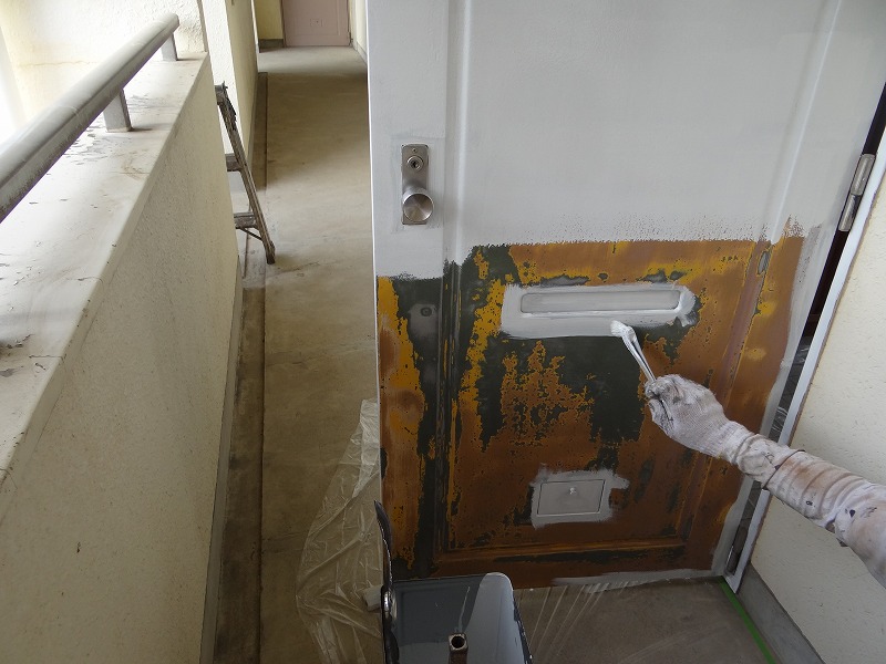 今日は玄関の鉄扉の塗り替えを行いました。まずは経年劣化した旧塗膜を削り取りますしっかりペーパーをかけまして、掃除が基本です。その後は白サビを塗布、乾燥後もう一度、白サビ塗布。そんな感じで下地はしっかり出来たので、明日は仕上げを行いま~す。