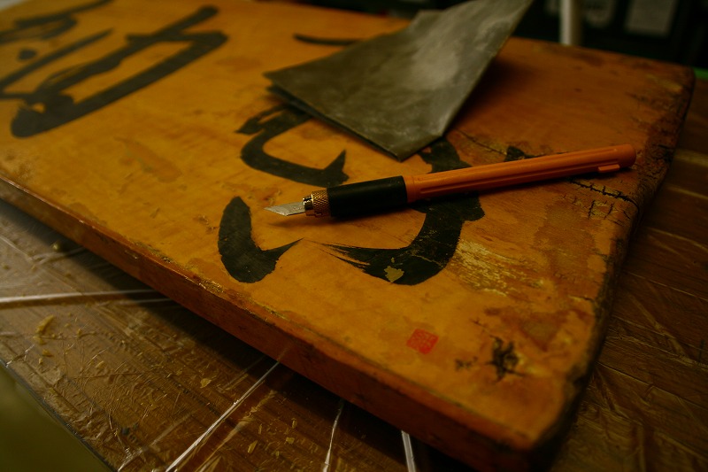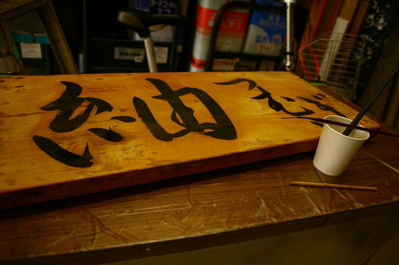 ご近所の割烹紬さんの看板をちょこちょことしております。クリヤーが劣化しているので、劣化したクリヤーを優しく、カリカリっと削いだり、ペーパーを当てたり、色付けしたりと。。お店の大切な看板なので、いつでも真剣ですが(笑)特に気持ちを込めて進めております。ぬぁ~んちゃって。