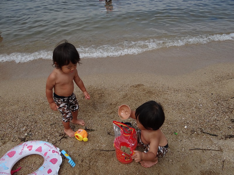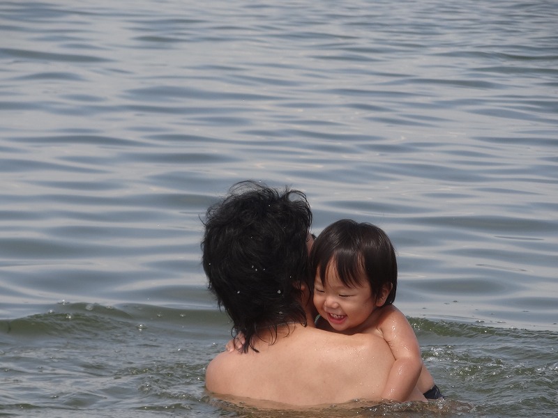 楽しい砂遊びをしておりましたが、さーいざ、海の中へ!