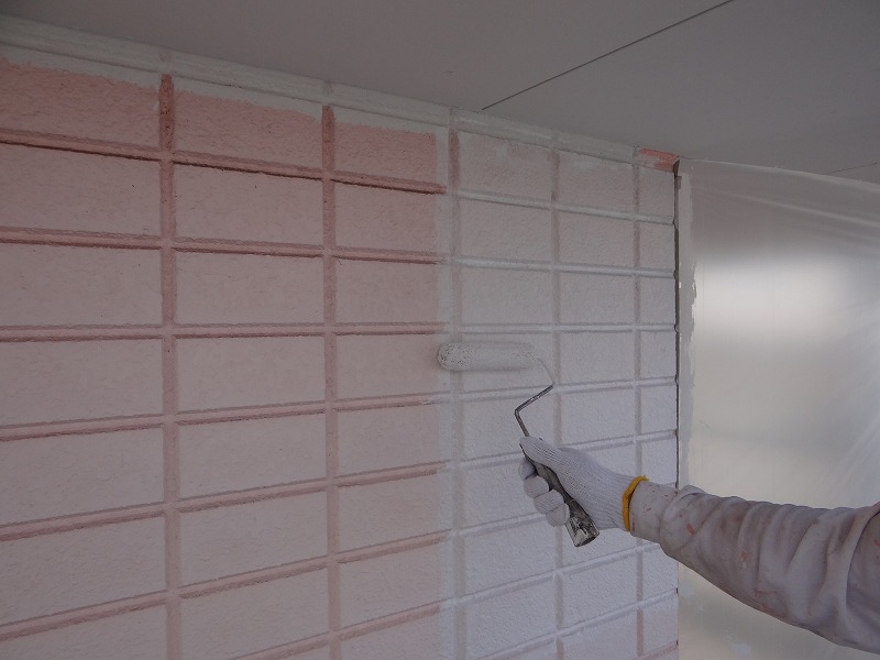軒裏を仕上げたので外壁塗装の下塗りをコロコロ~と。