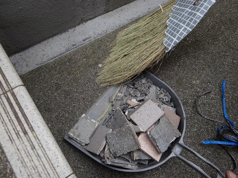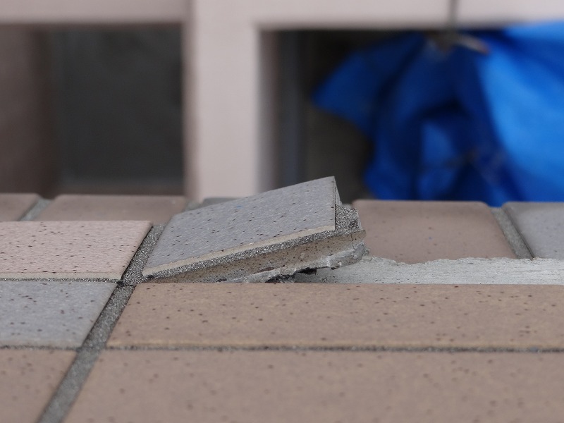 今日は早朝から外壁タイルの浮いた箇所の撤去を行っておりました。