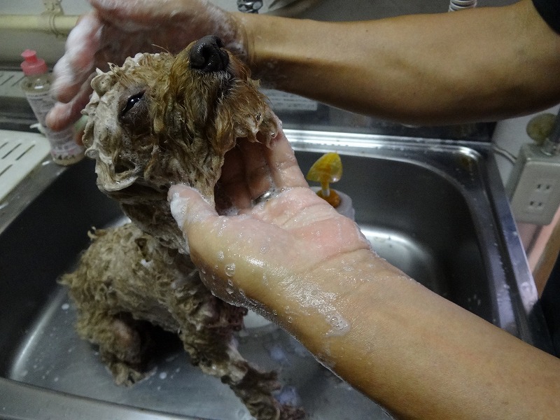 帰宅後はお犬さんのシャンプーをせっせと。