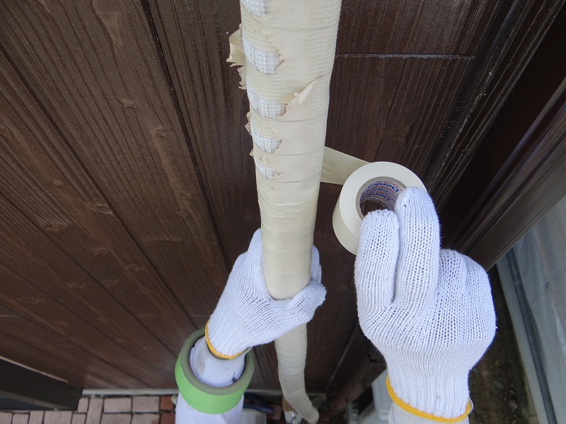 エアコン配管のテープを巻いたり、塗装後のチェックをしておりました。