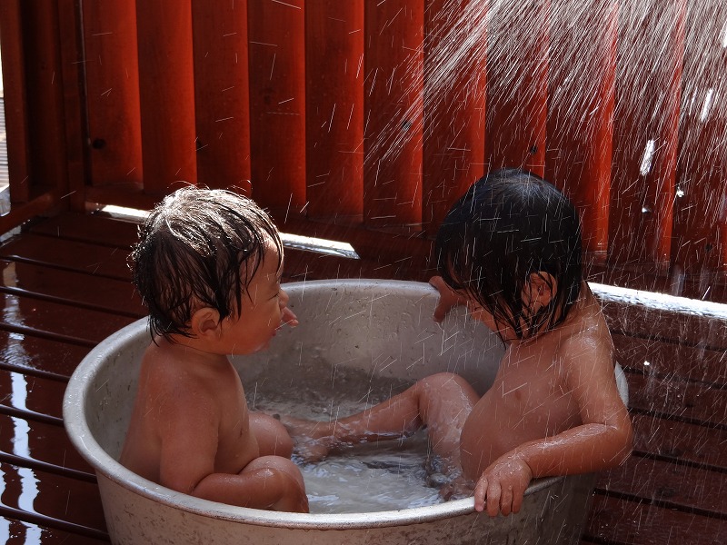 少し早く帰宅したら暑いですもんね、水遊びです。さー次の現場へゴーします。