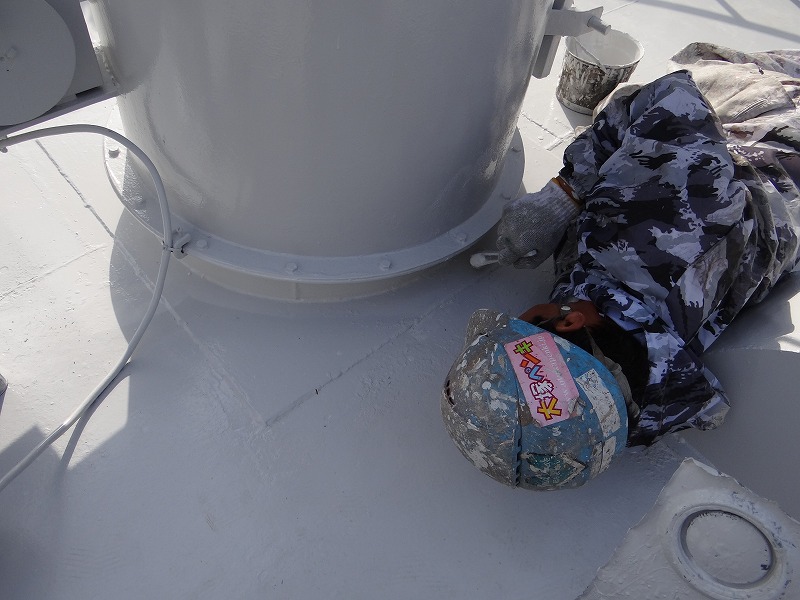 見えにくい箇所も鏡を使ったり、塗り残しのないようチェック、チェックの仕上げです。明日は、お休みをいただいて、また来週。