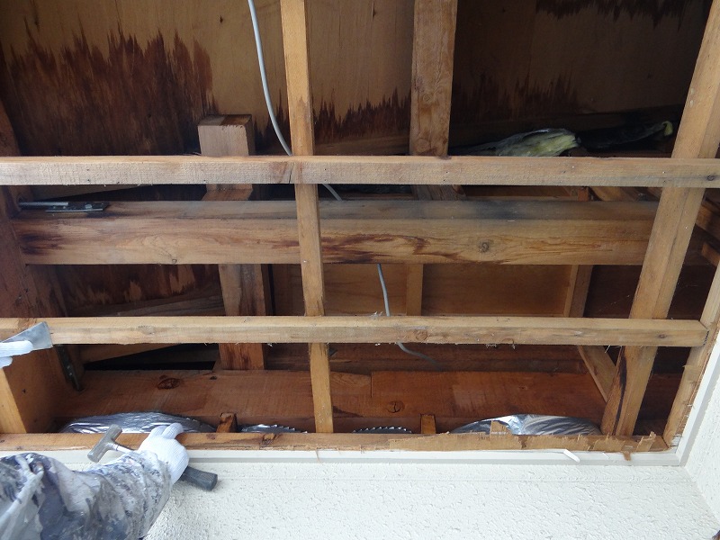 現場では今朝までの雨が止み、雨漏れの箇所も特定したので軒裏をめくって張り替えです。まーそんな日です。