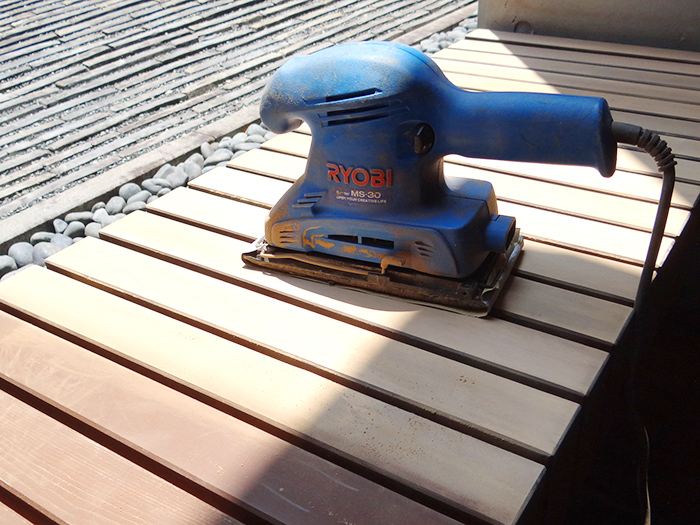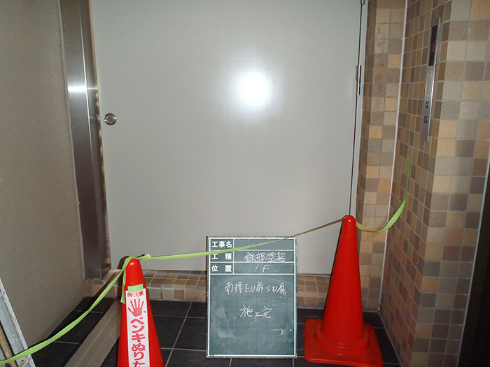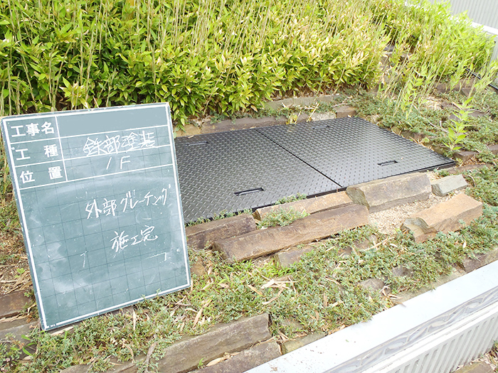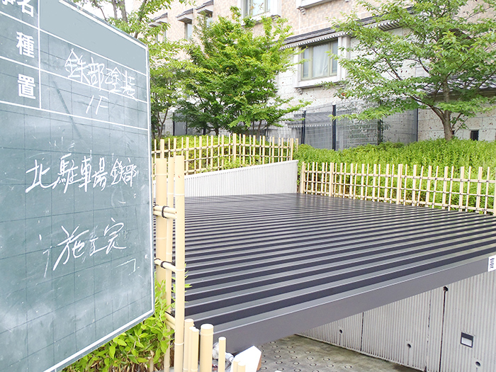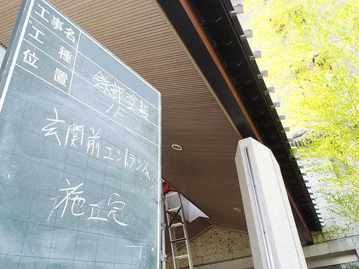 01. 養生を行い既設クリアーを研磨 施工中になります。