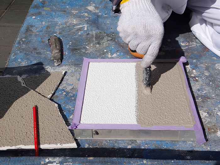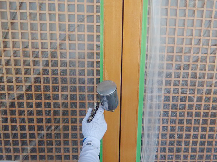 02.下塗りのサンジングシーラーを塗布施工中になります。
