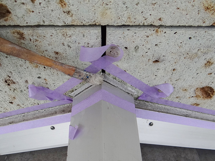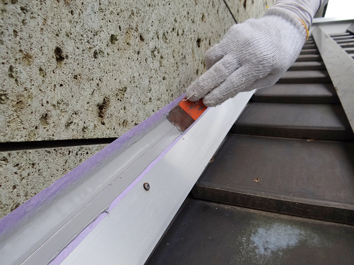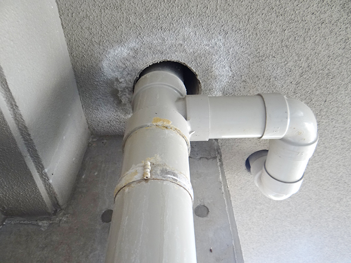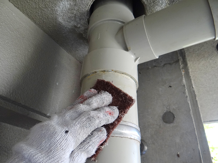 07.樋に付着したエフロなどを清掃 施工中になります。