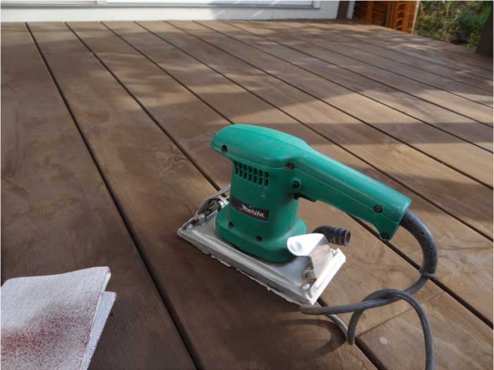 02. サンドペーパーを使用して旧塗膜を削り、素地調整施工中になります