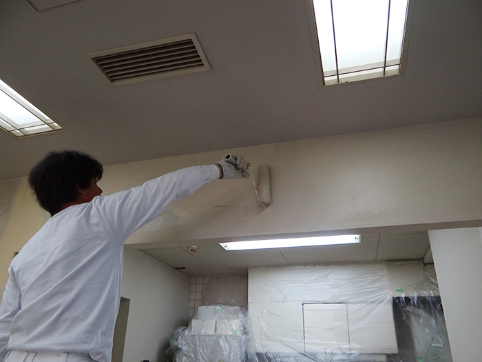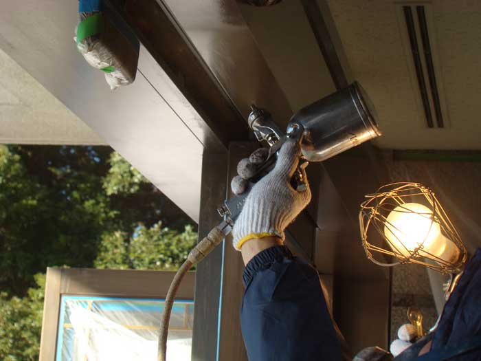 02. 足付け清掃後、下塗りの塗装中