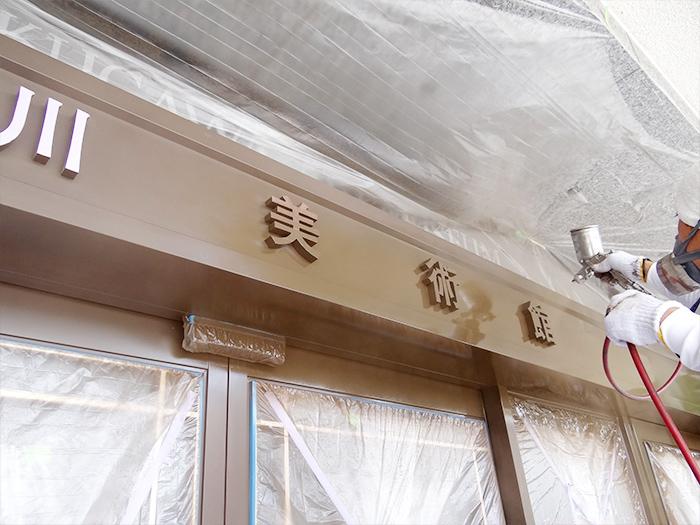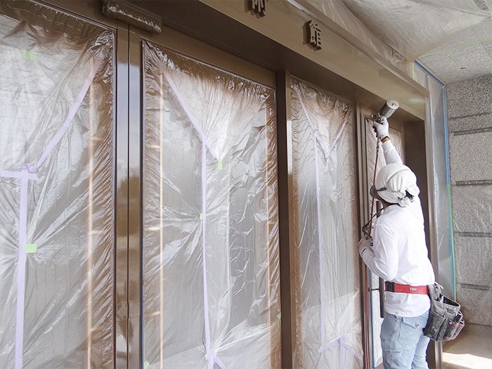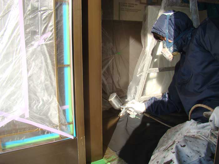 01. 正面入り口塗装工事を始めました