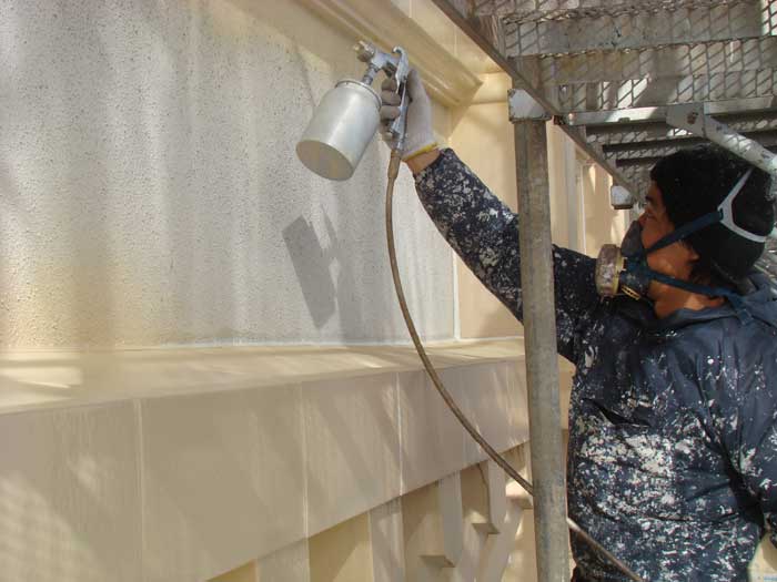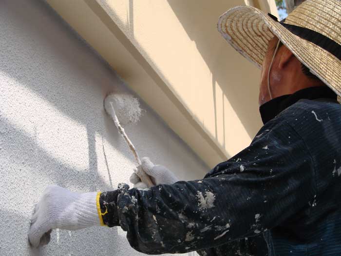 08.外壁の中塗り施工中