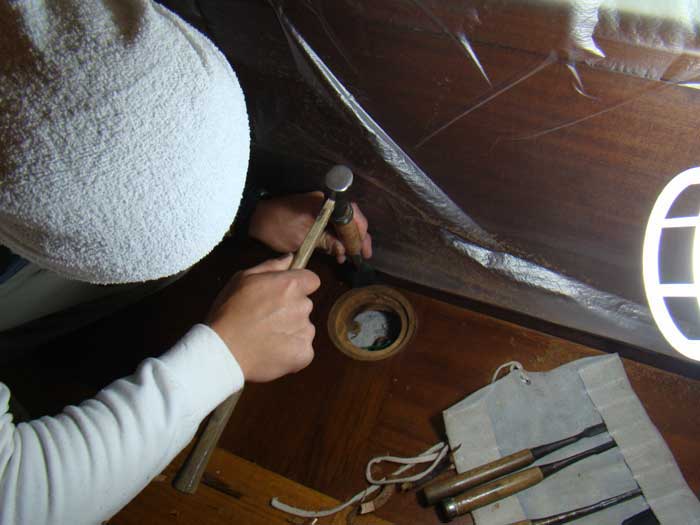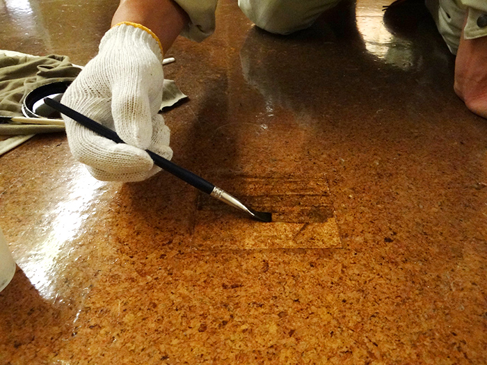 04.紙の撤去は、水で浸してふやかし傷を付けない様、割りばしなどを使用して施工を行いました