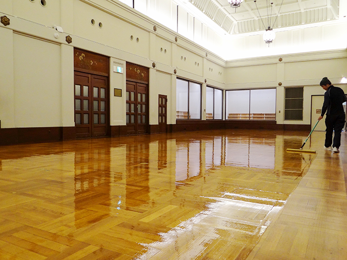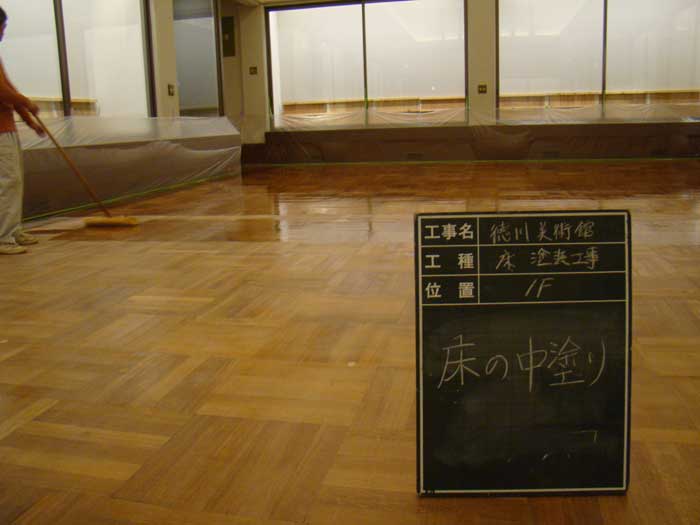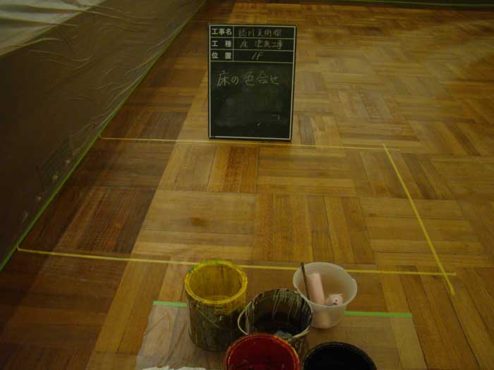 04.既存の床の色・使用感合わせるために調色後、ワックスを塗り重ねて仕上げました