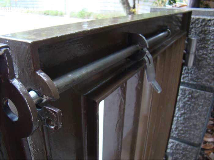 01.昨年、塗装工事を納めさせて頂きました門の開閉が悪いとの事でメンテナンスを行います。