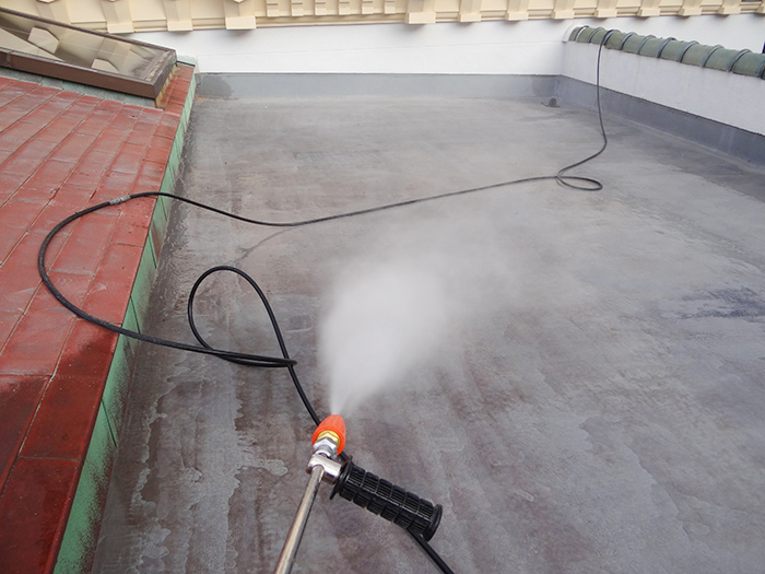 02.屋上の高圧洗浄施工中