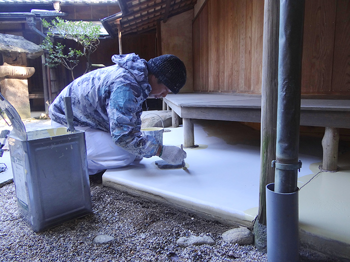 04.調色を行い塗布施工中になります