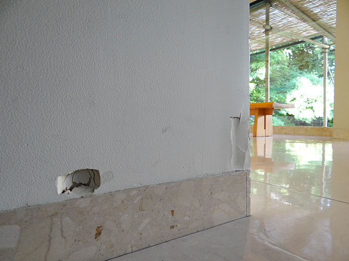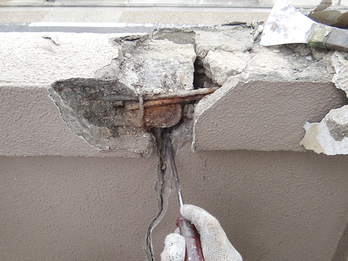 02.割れた躯体を撤去し補修を行いました。